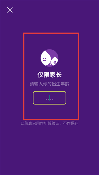 3、进入仅限家长的验证页后,输入出生年龄完成验证,就能继续后续的解锁操作啦。