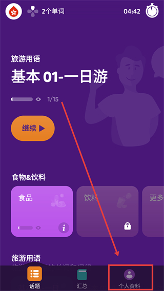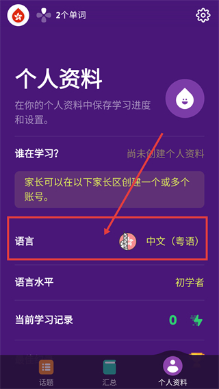 1、在主界面点击底部的【个人资料】选项,就能进入个人资料页面,管理学习相关的设置啦。
