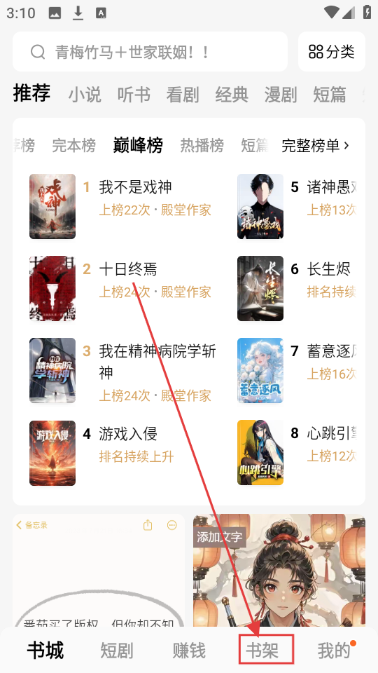 2、整理你读过的小说后,在首页创建一个栏目,查找热门书籍带给你好过程。