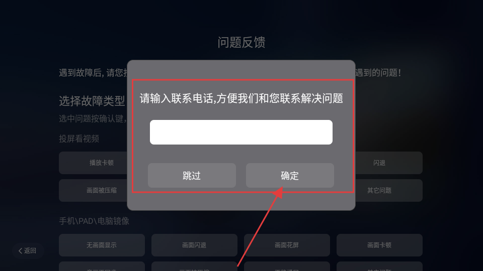 4、提交反馈后可输入联系电话,点击【确定】或【跳过】,完成问题反馈流程啦。