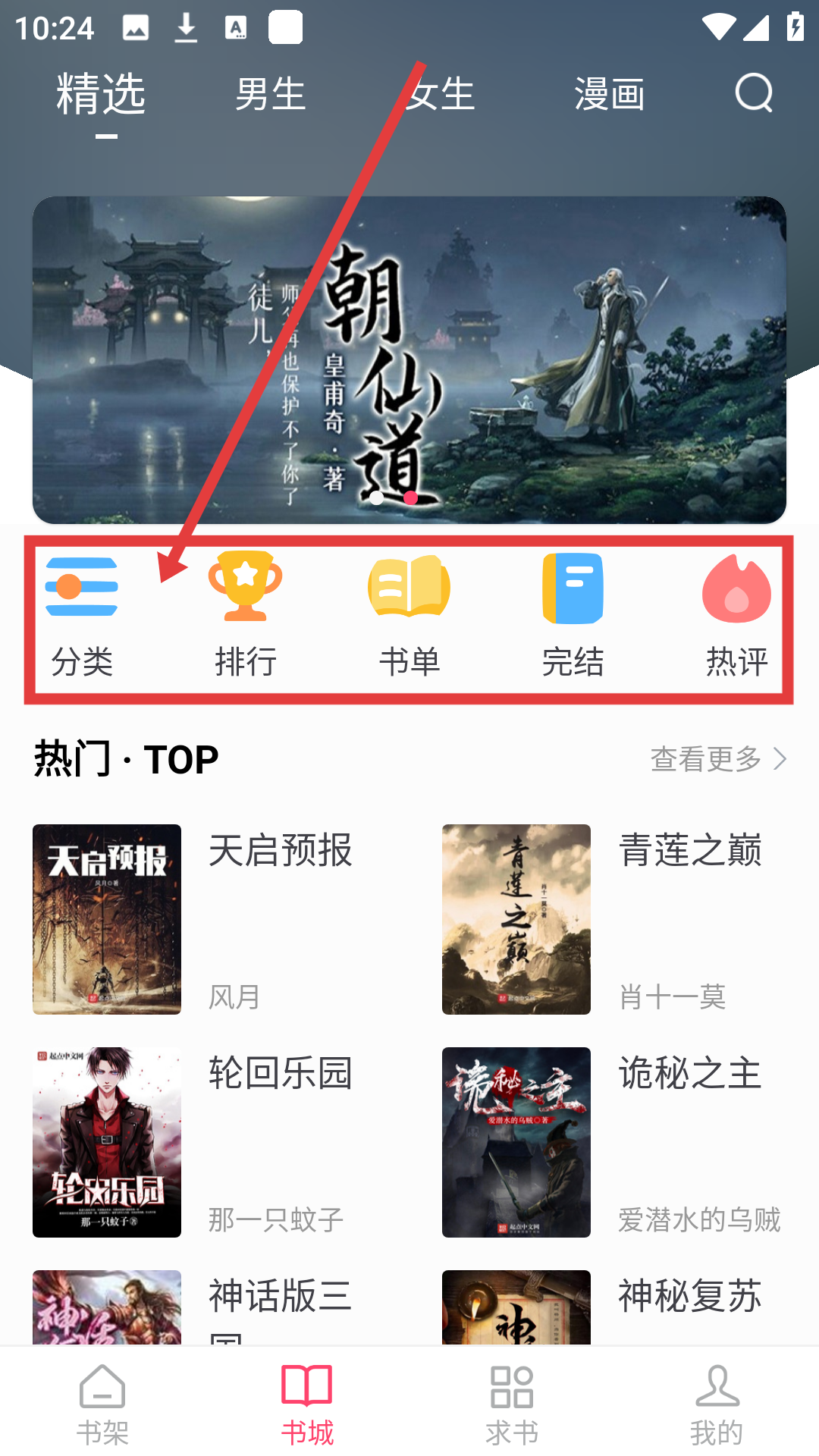 2、在分类界面挑选喜欢的小说类别,如【仙侠】,点击即可进入该类别小说列表啦。