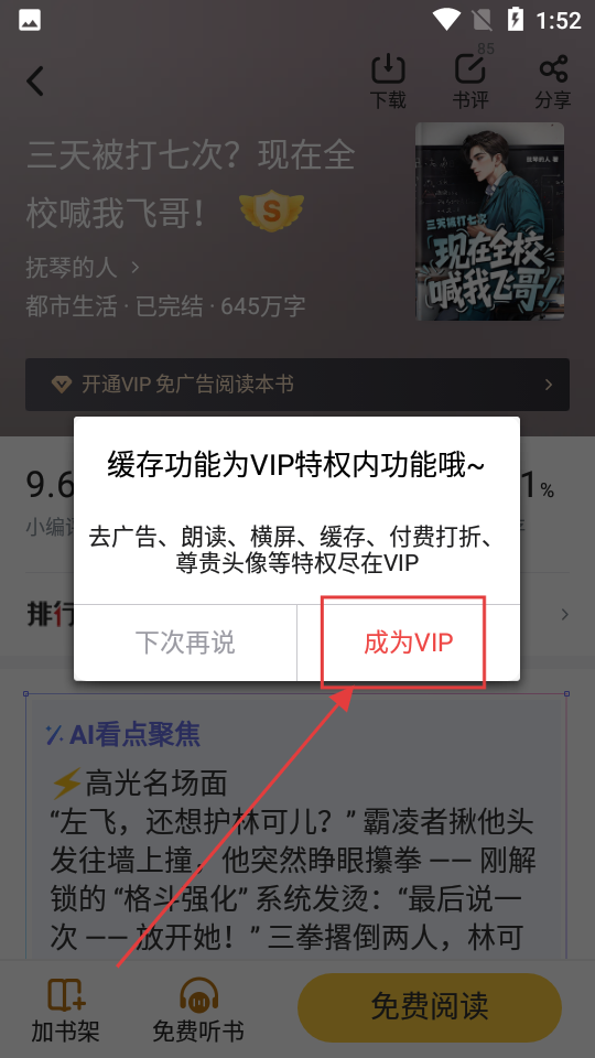 3、若下载需VIP权限,会弹出提示框,若要开通VIP,点击【成为VIP】。