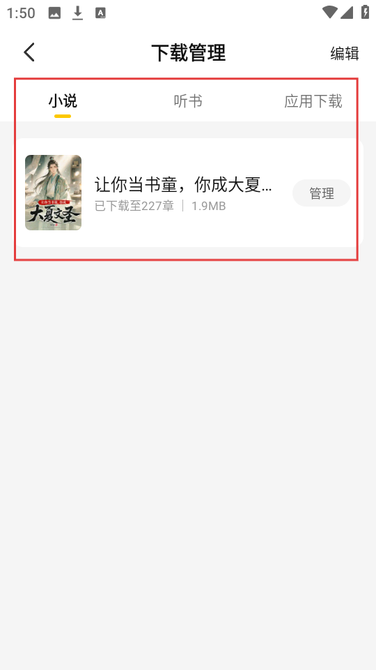 4、下载完成后,去下载管理页面,就能看到下载好的小说,像【让你当书童,你成大夏文圣】,超方便后续阅读的。