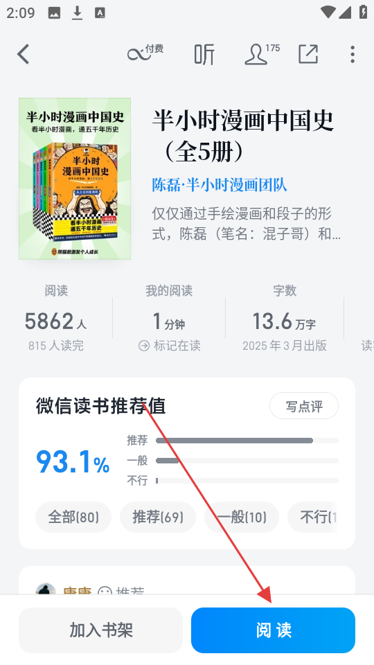 1、点击【阅读】,进入《半小时漫画中国史(全5册)》阅读界面,开启阅读之旅哦。