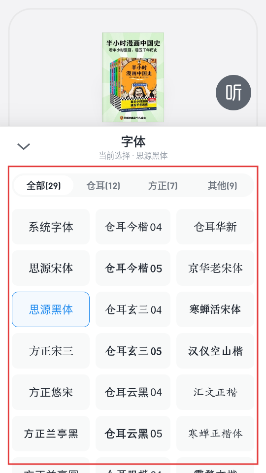 4、在字体选择界面可浏览各类字体,选择心仪的字体,享受个性化阅读体验啦。