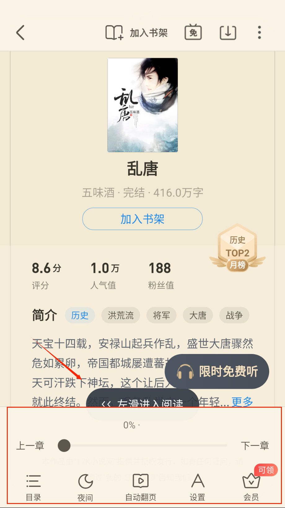 2、开启听书功能可以让眼睛休息,支持后台播放和语速调节,通勤路上也能享受阅读乐趣。