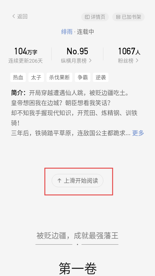 4、设置好后,回到小说详情页,上滑即可开始阅读小说内容,沉浸在故事中吧。