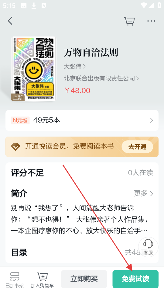 2、在书籍详情页,找到【免费试读】按钮,点击它,开始免费试读这本书。