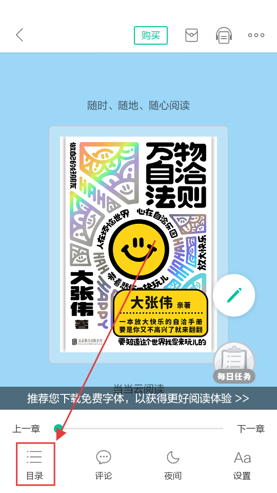 3、进入试读页面,找到【目录】按钮,点击它,查看这本书的章节目录。