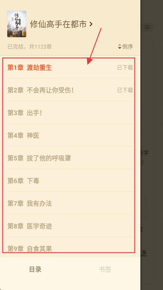 3、在目录里,可选择想看的章节,比如【第1章渡劫重生】,超容易找到的哦。