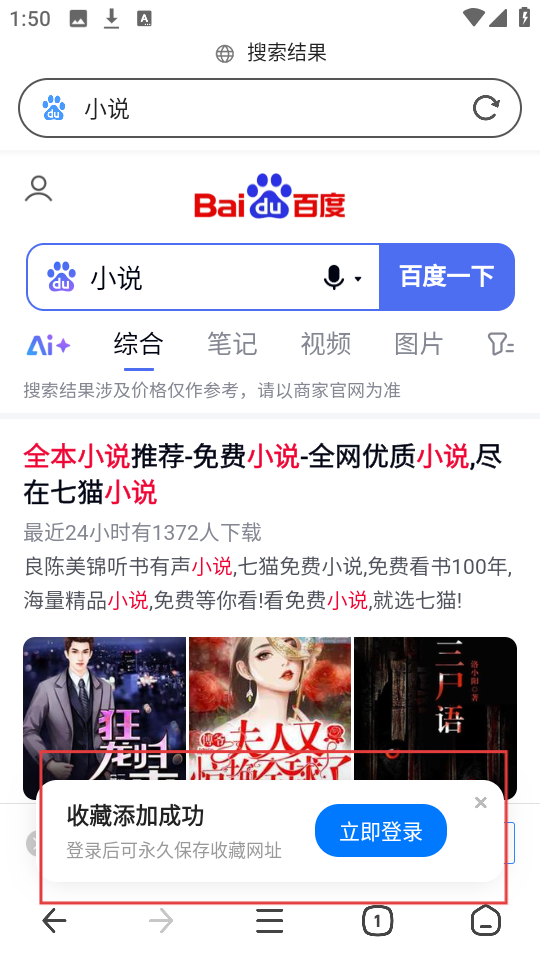 4、想查看收藏的网址,就进入收藏页面,在【收藏】标签下就能找到【小说】网址啦。