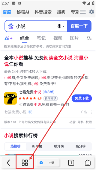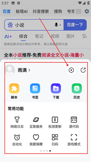 2、在搜索结果页点底部的功能按钮,能打开功能菜单,后续可进入设置相关界面调整配置哦。