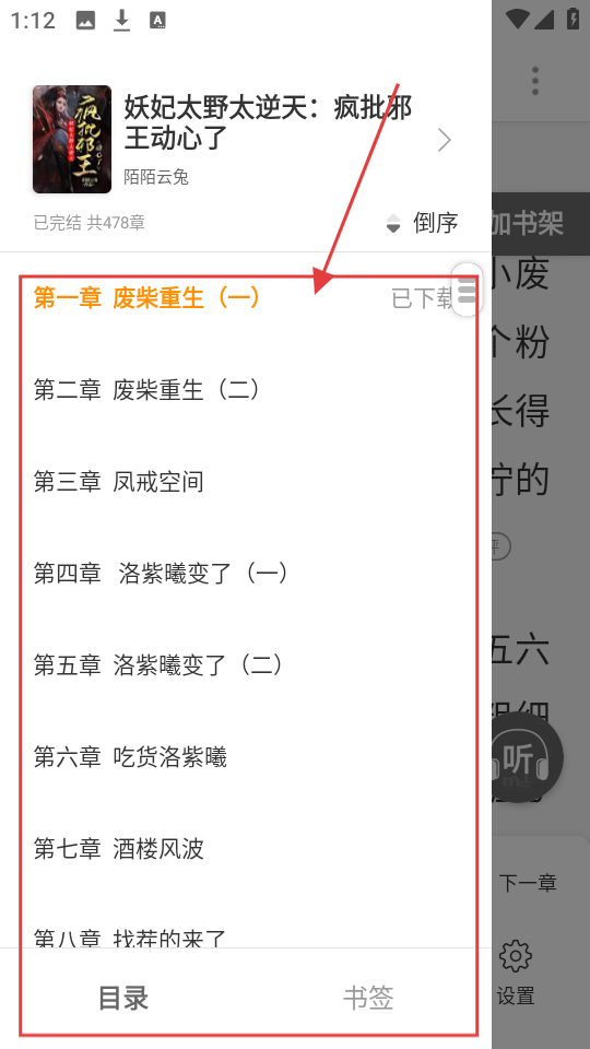 4、在目录列表中,选择想阅读的章节,即可快速跳转到对应章节进行阅读,方便又快捷啦。