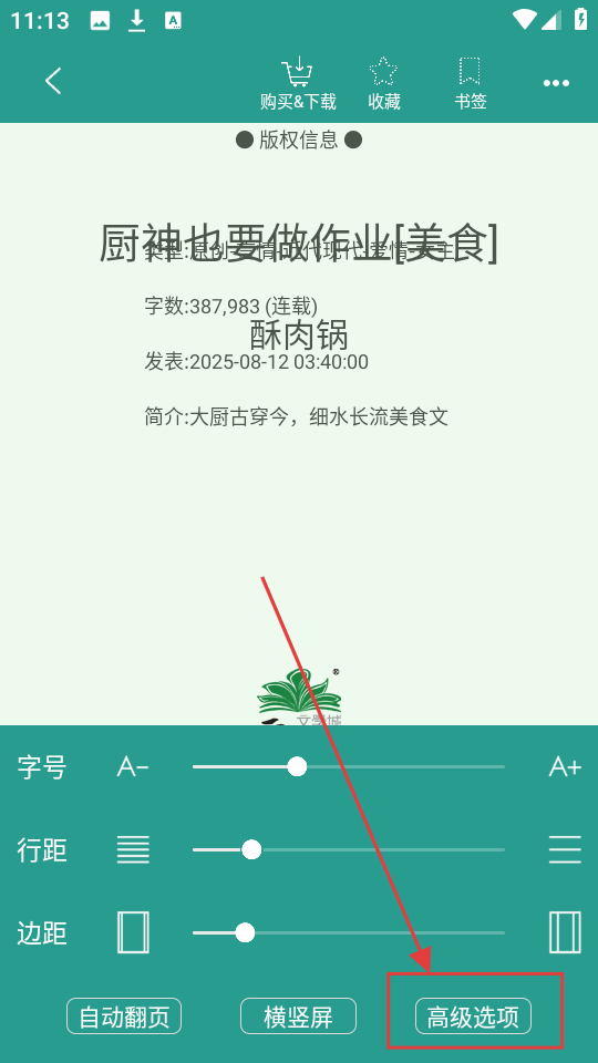 3、在设置里,若想进一步自定义阅读,点击【高级选项】,进入高级设置页面。