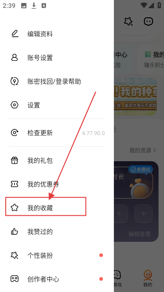 3、展开菜单后,找到【我的收藏】选项,点进去就能看到自己收藏的内容啦。