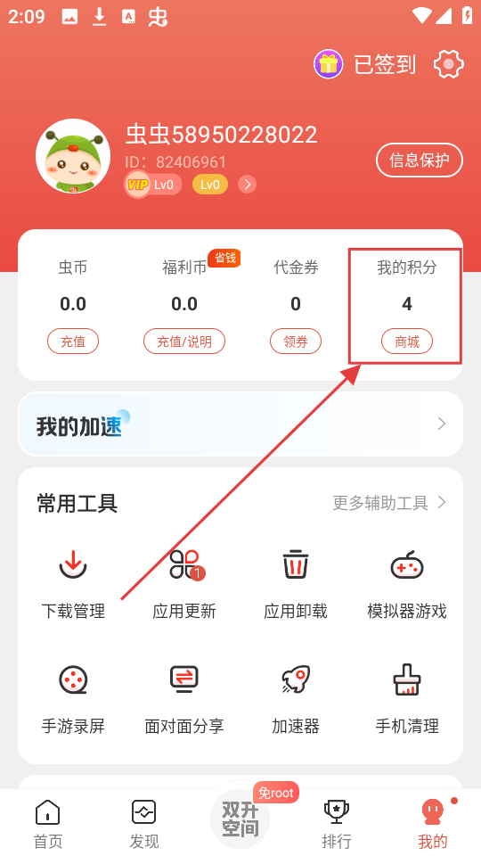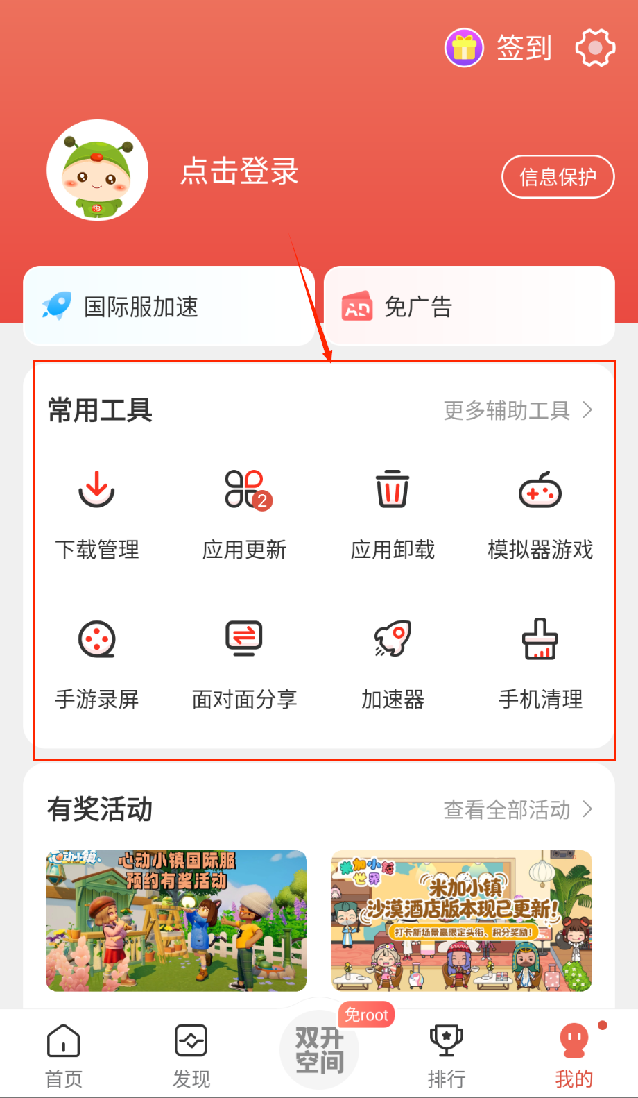 6、点开我的,有手机清理、下载管理、应用更新/卸载、加速器等。