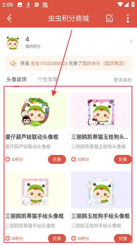 2、进入积分商城后,能看到各类可兑换的商品,比如头像框等,选择心仪的商品,点击进入其详情页面哦。