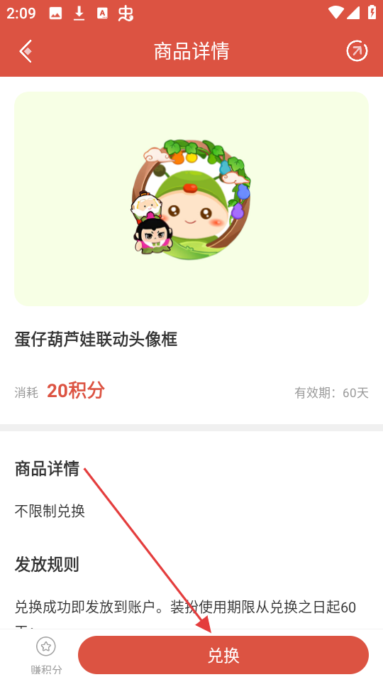 3、进入商品详情页面后,查看商品信息,若确定要兑换,点击【兑换】按钮,就能进入兑换确认环节啦。