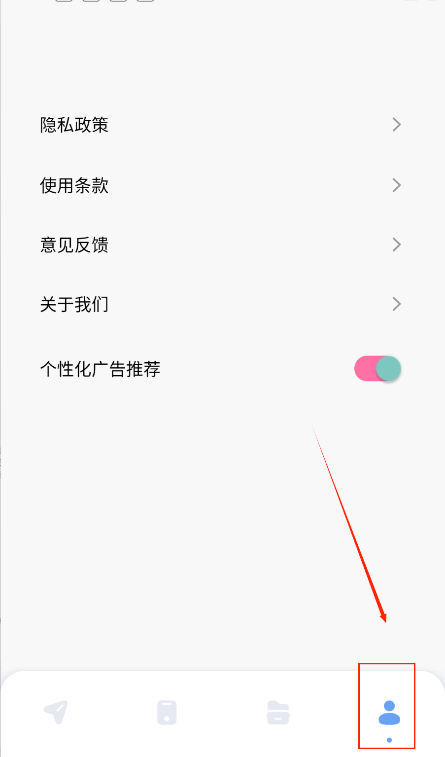 1、先从个人中心开始配置软件,打开应用后点击底部“我”的入口,进入设置页面。这里有隐私政策和使用条款供你查阅。
