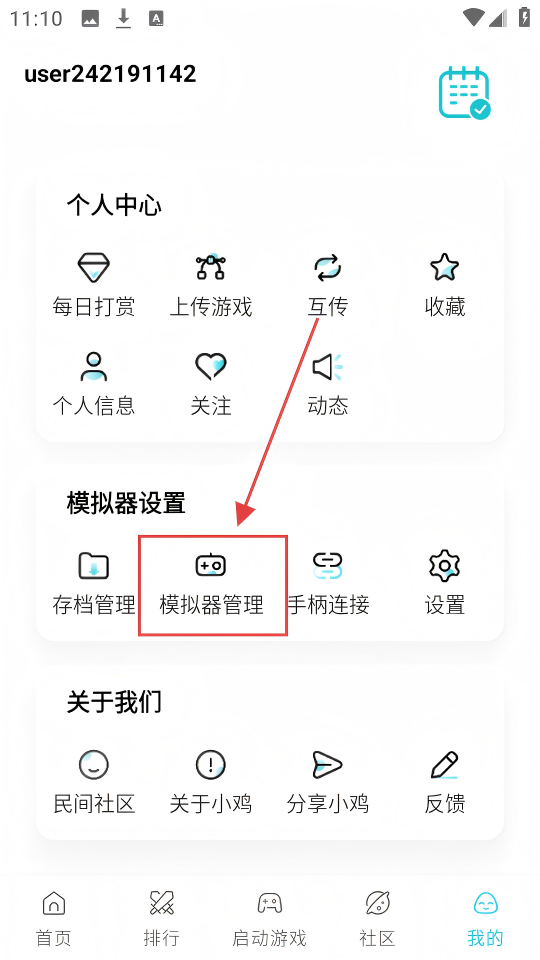 2、个人页面里,找到【模拟器管理】,点击它进入模拟器管理页面,可管理各类模拟器呢。