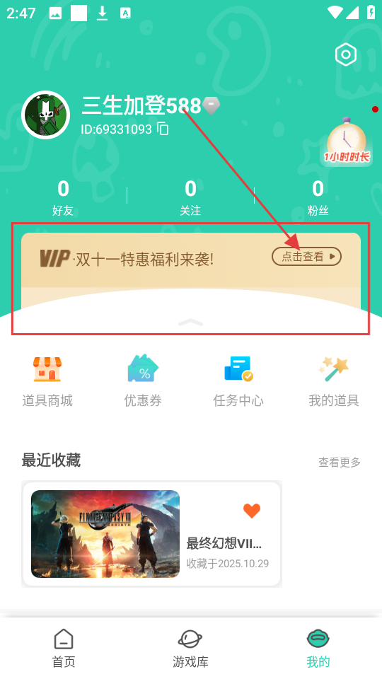 1、在【我的】页面,点击【点击查看】,可进入VIP会员页面,了解会员开通信息啦。