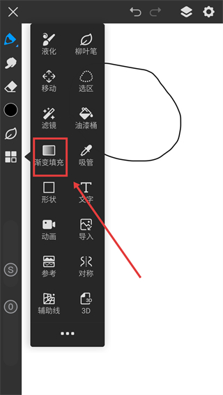 2、在功能菜单里选择【渐变填充】工具,即可进入渐变效果的设置界面,为图形添加色彩过渡啦。