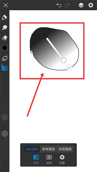 3、在渐变设置界面选择【线性】渐变类型,还能切换图层范围,调整渐变的应用区域哦。