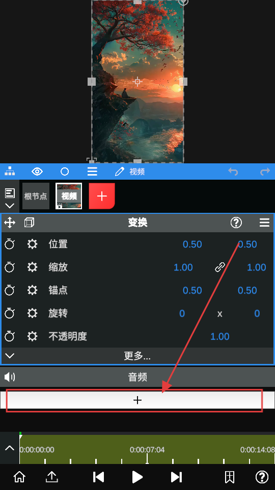 1、视频编辑界面里,下方有个“+”按钮,点击它就能添加新的属性或效果啦。