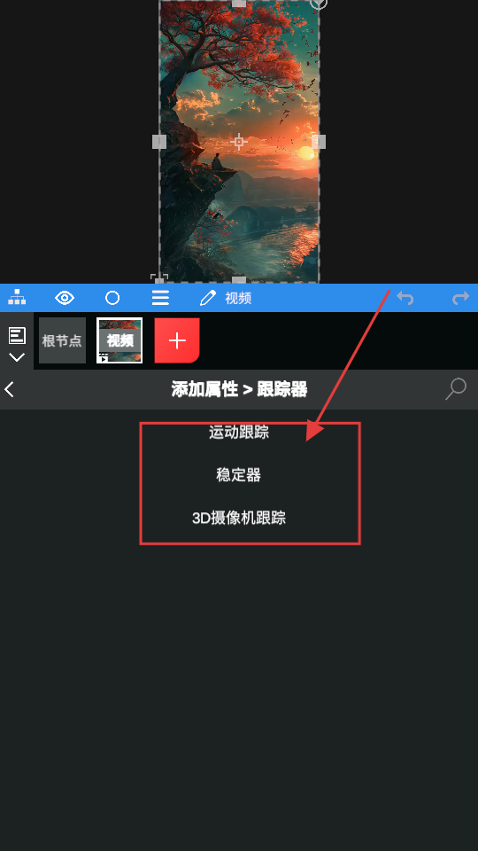 3、跟踪器设置页面有运动跟踪、稳定器等选项,根据需要选择合适的跟踪类型就行啦。