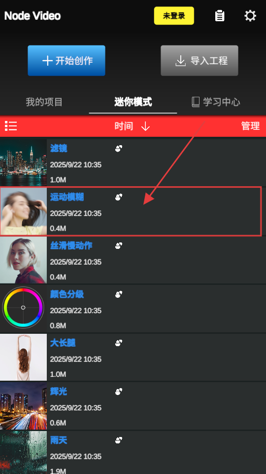 2、迷你模式页面里,有运动模糊等效果,选【运动模糊】就能给视频添加运动模糊效果哟。