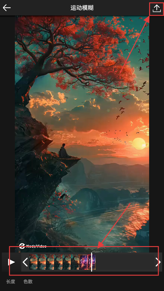4、进入运动模糊设置界面,调整相关参数,设置好后点击右上角的导出按钮,就能保存效果啦。