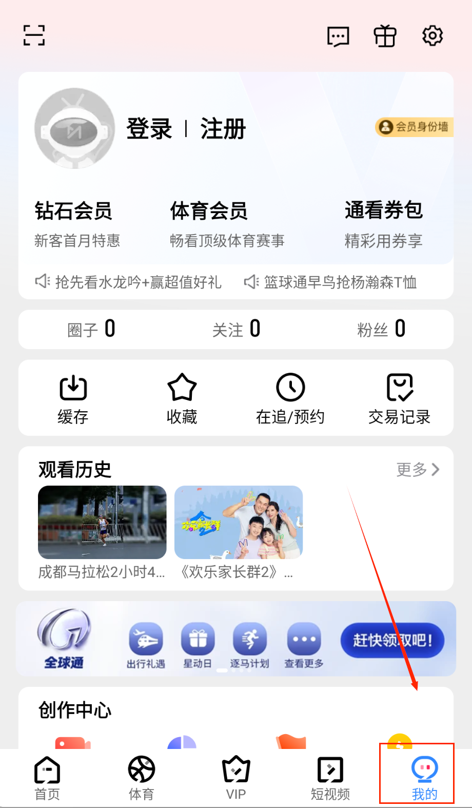 4、个人中心在“我的”页面,这里能管理缓存、收藏和历史记录,开通会员还能享受免广告、抢先看等特权,日常使用更便捷啦。