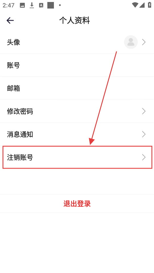 3、在个人资料页面,点击【注销账号】,可进入注销账号页面啦。