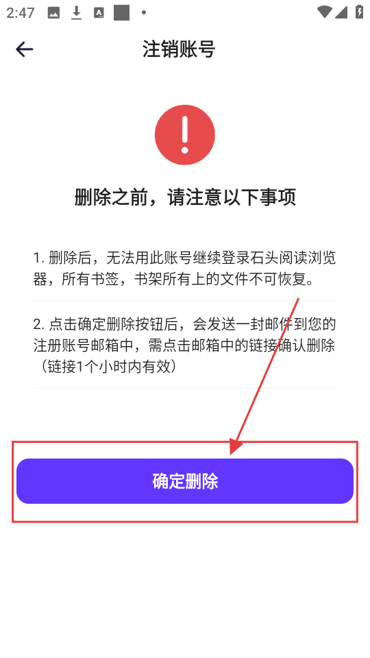 4、在注销账号页面,点击【确定删除】,可按照提示完成账号注销操作哦。