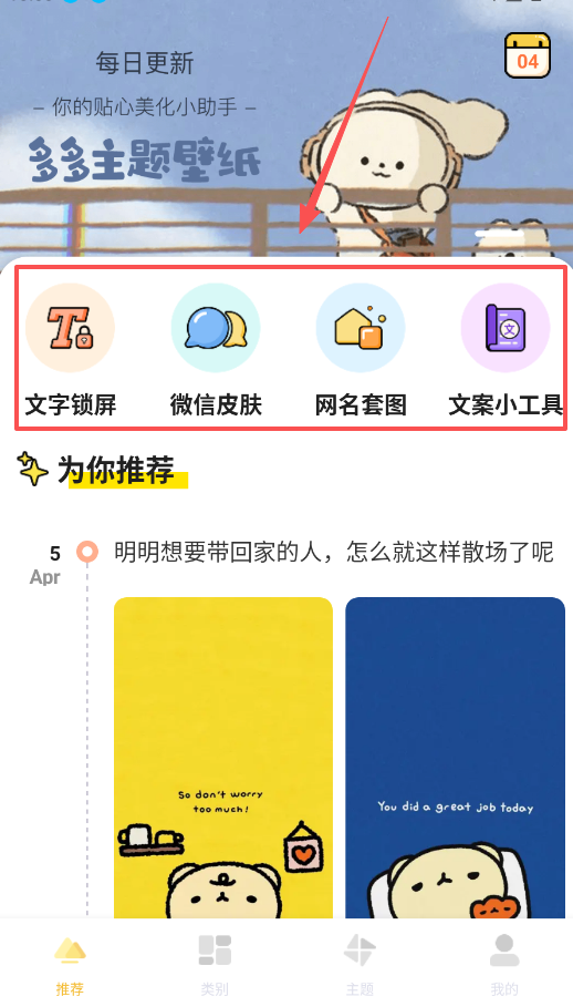 三、善用工具区打造个性细节,在“推荐”或“分类”里,别忘了还有“文字锁屏”、“微信皮肤”这类小工具。