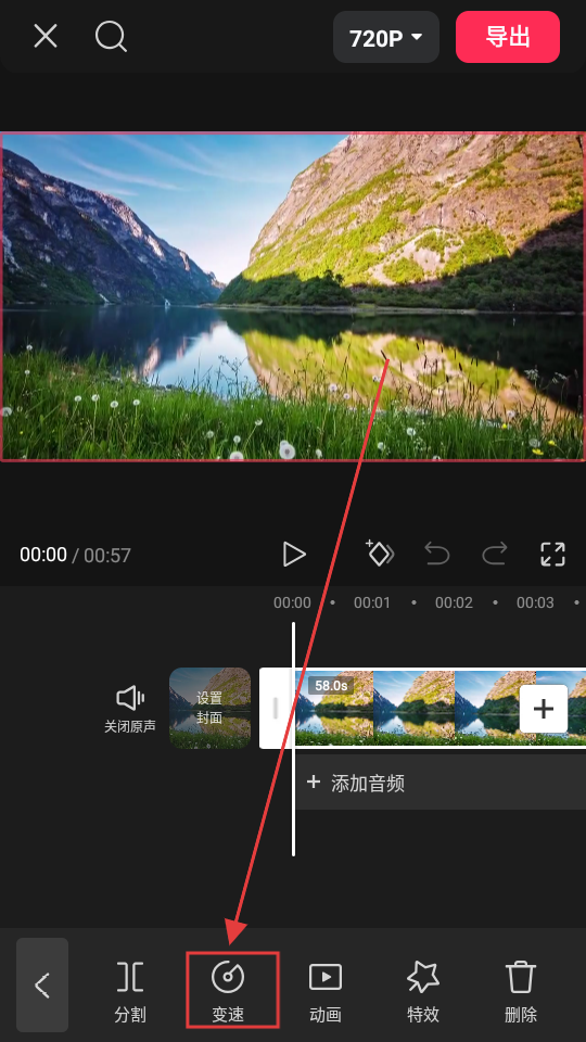 2、进入视频编辑页面后,我们可以对视频进行多种编辑操作,点击【变速】,就能进入变速功能页面,调整视频播放速度。