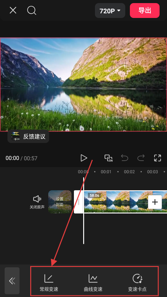 3、进入变速功能页面后,有常规变速、曲线变速等变速方式,我们可以选择合适的变速方式,对视频速度进行调整。