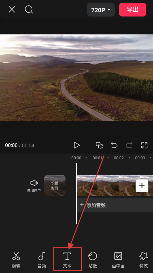 1、想给视频加字幕的话,先点击下方【文本】选项,这样就能开启字幕添加的相关功能啦。