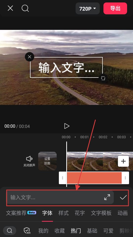 3、选择【新建文本】后,视频上会出现文字输入框,在下方的输入栏里输入你想要的字幕就行啦。