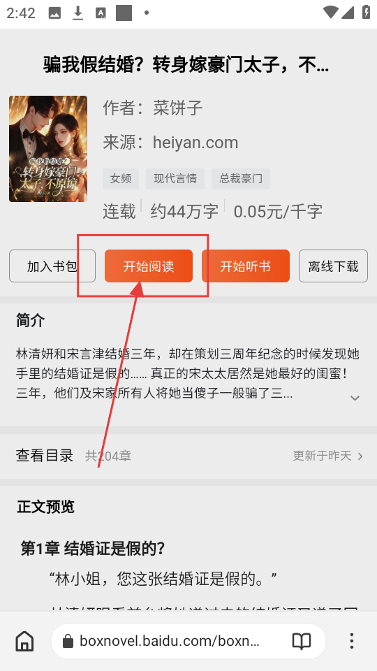 1、在小说详情页点击【开始阅读】按钮,即可进入阅读页面开始看小说啦。