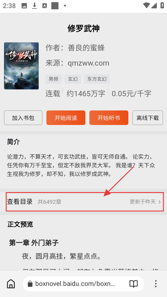 2、在目录界面挑选想要阅读的章节,点击即可快速跳转至该章节啦。