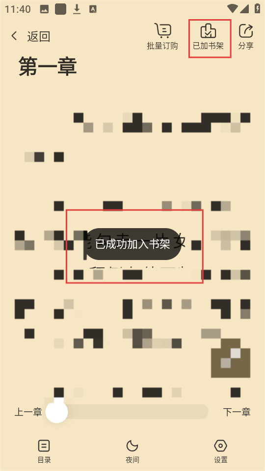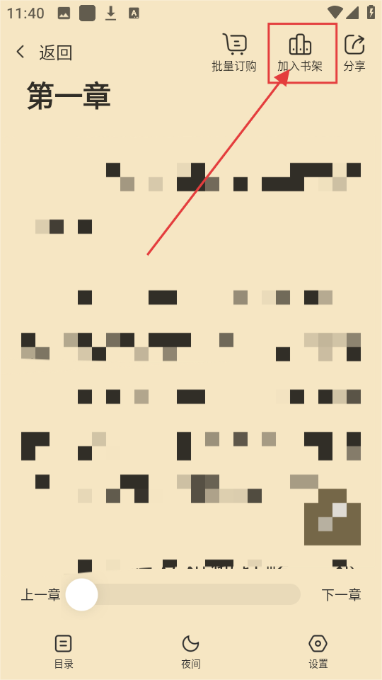 2、进入阅读页面后,点击【加入书架】,就能把这本书收藏起来哦。