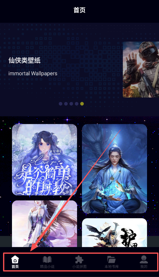1、软件整体布局很直观,底部始终有首页、精品小说、小说拼图、本地书库和我的五个图标,在不同功能界面间自由跳转。