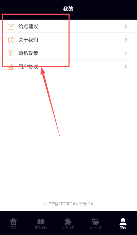 4、最后,别忘了逛逛“我的”页面,这里像是软件的后台服务中心,提供从提建议到查隐私政策的各种选项。
