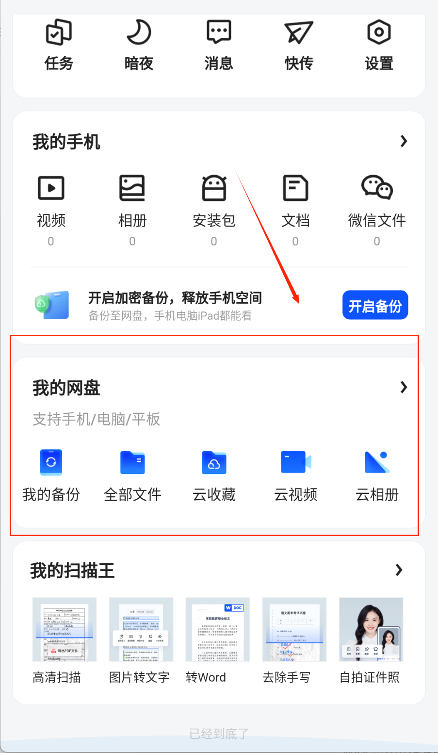 2、点击图标之后,选择网盘;