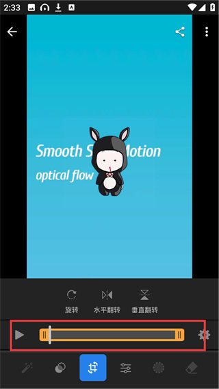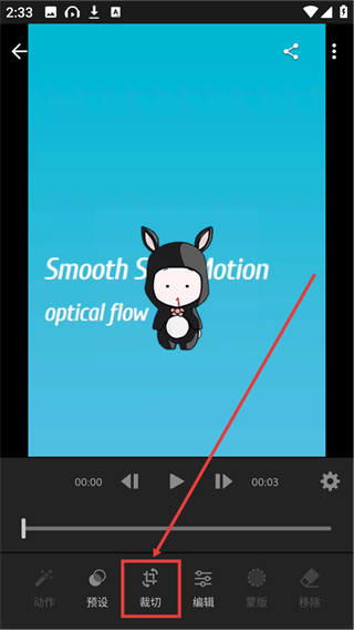 2、进入视频编辑页后点底部的【裁切】选项,能开启裁切功能,后续可调整视频的片段哦。