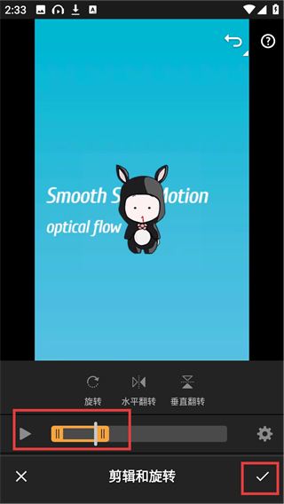 4、调整好片段范围后点右下角的对勾按钮,就能保存这次裁切的修改,完成视频的编辑哦。