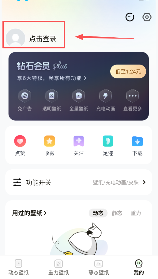2、对重力感应效果的壁纸好奇的话,直接点击底部第二个图标进入“重力壁纸”板块。