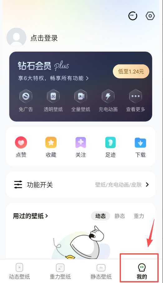 4、软件设置的关键藏在“我的”页面里,找到“功能开关”,你可以批量开启或关闭壁纸、充电动画等核心功能。