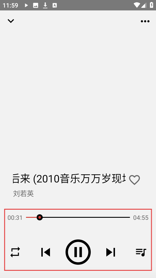 4、选择播放歌曲后,进入播放界面,能看到进度条和播放、暂停等控制按钮,可控制音乐播放。